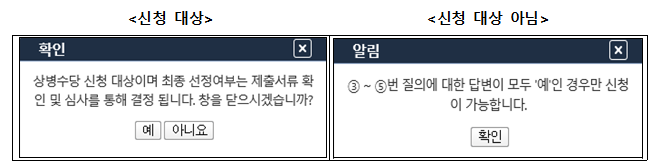 3. 결과 확인 - 신청대상이 아닌 경우 신청대상자 기준 충족 후 신청 가능