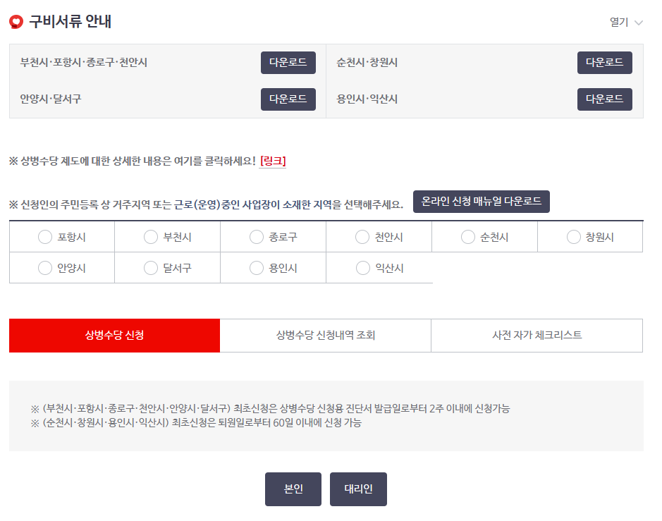 2. 상병수당 신청메뉴