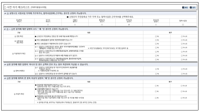 1. 상병수당 신청메뉴 : 민원 여기요 - 개인민원 - 보험급여 - 사전 자가 체크리스트