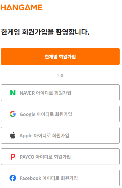 한게임 회원가입 및 로그인