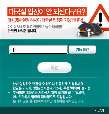 2. 한번 설정하면 변경할 수 없는 대화명을 설정해야 대국실 입장이 가능합니다.