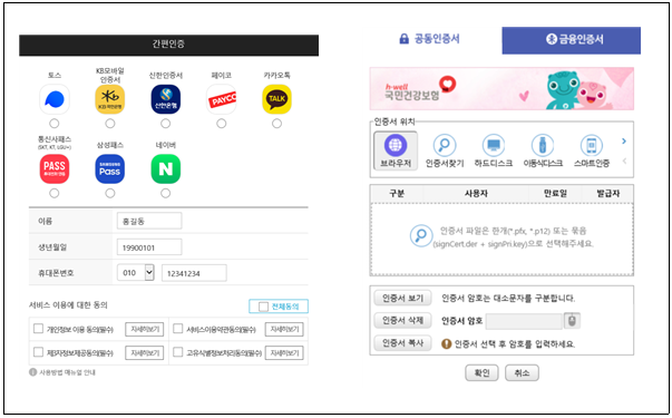 - 본인의 경우 '본인', 대리인 신청인 경우 '대리인'선택 - 홈페이지에서 대리인이 신청하는 경우는, 주님ㄴ등록등분 상 동거가족(민법상 직계혈족)이거나, 동일 건강보험증에 등재된 가족만 신청가능