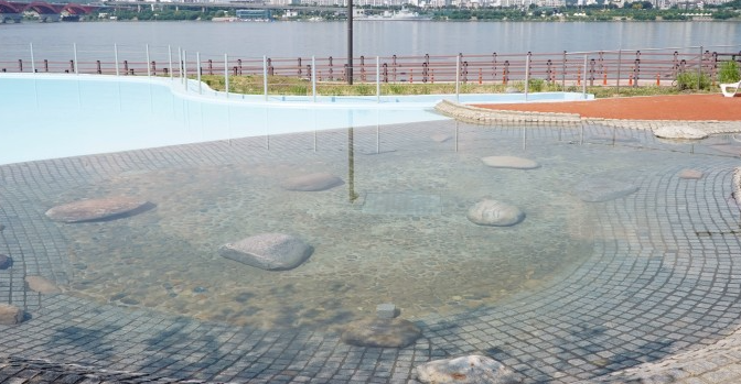 ✅ 한강을 가장 가까이서 조망할 수 있는 인피니티 풀 형태로 조성했으며 한강을 배경으로 음악분수도 가동하고 있습니다.